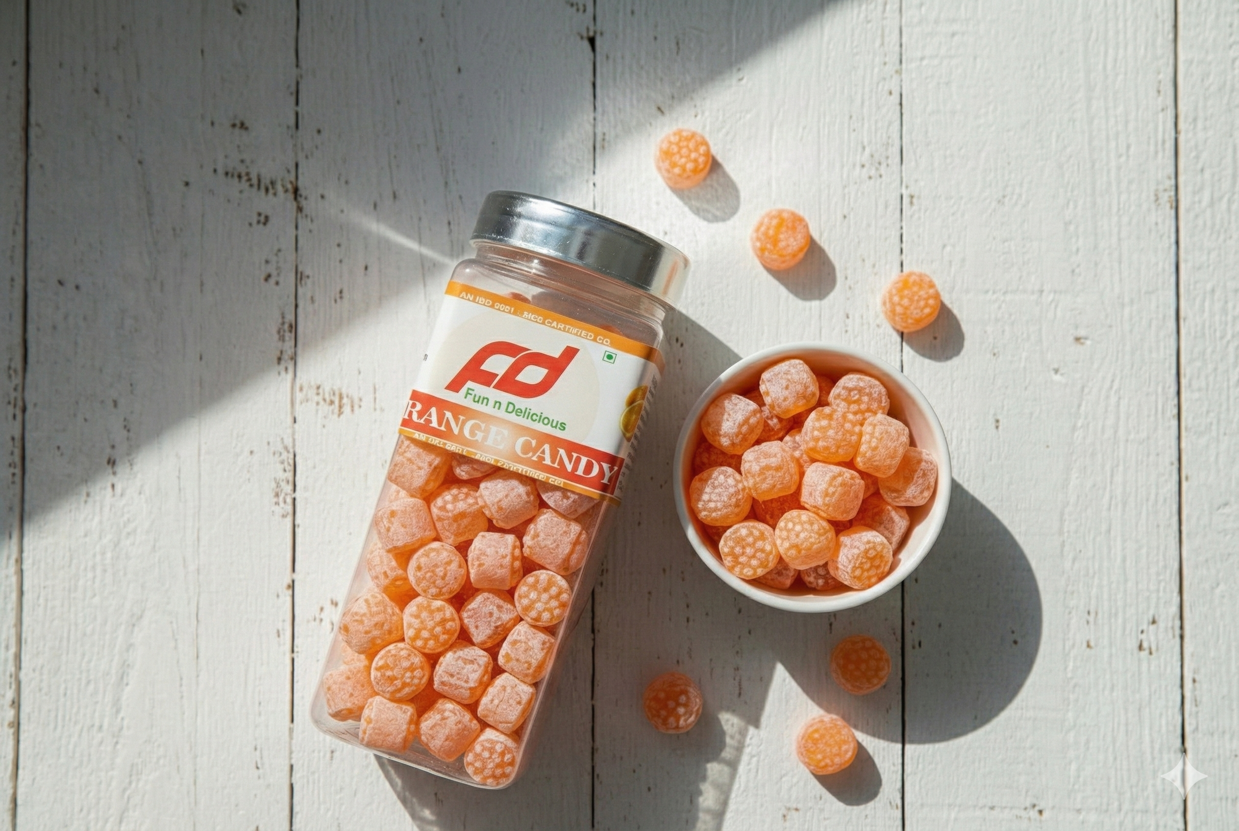 Orange hard-boiled candy, which has a typical orange flavour may provide several benefits. Here are some potential advantages of consuming orange hard-boiled candy: